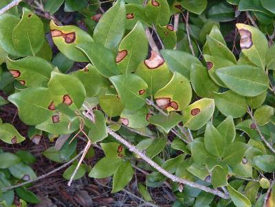 Q: I have a hedge of two year old wax leaf privet in front of my house. It appears they have some sort of fungus or disease. The house faces due east, therefore receives about half a day’s worth of direct sunlight. Is there anything that I can apply to the hedge to bring it back to good health?