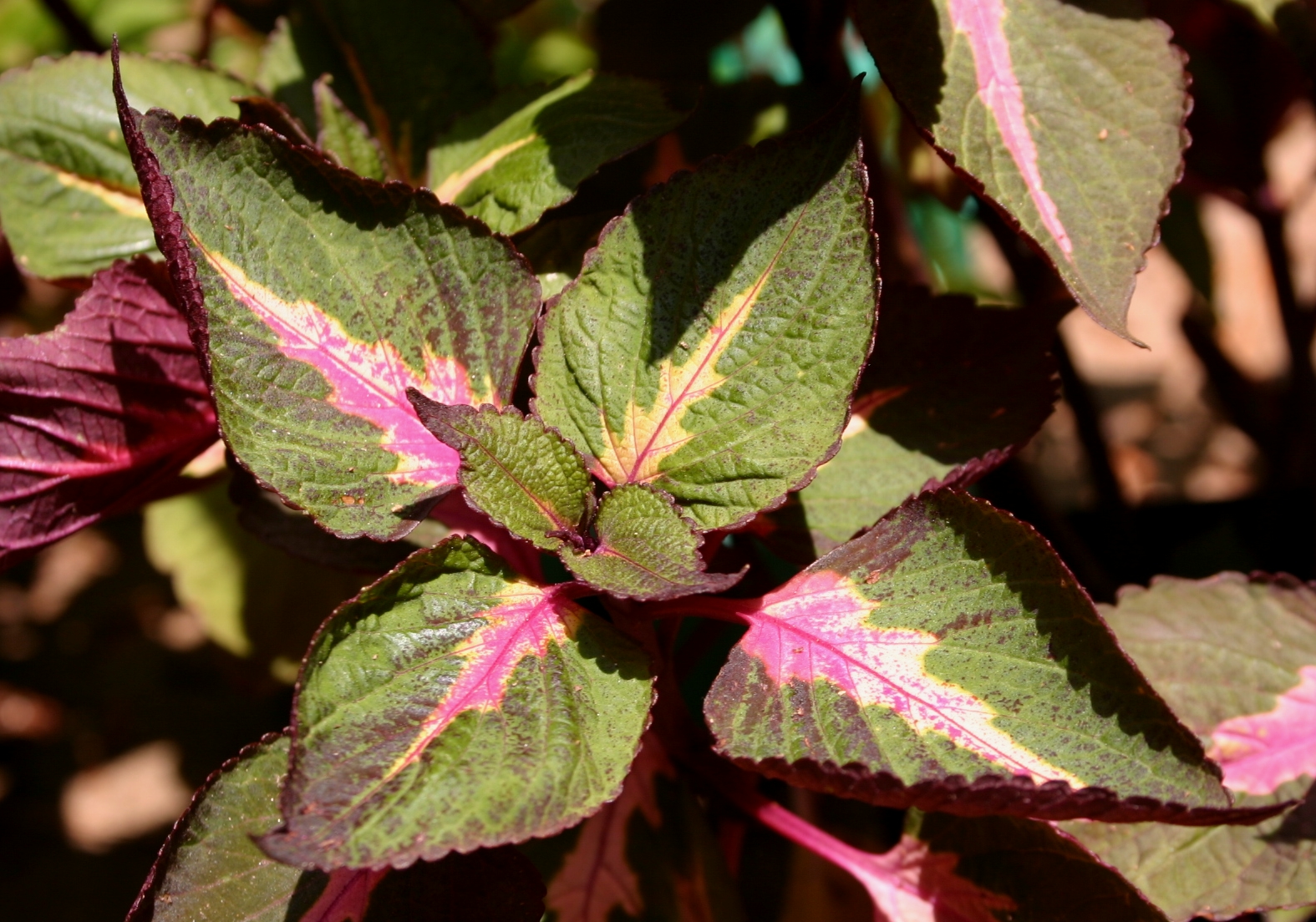 In contrast, ‘Magilla’ has become more and more desired over the past few years. The bright purple and yellow splashed leaves make it look like a coleus, which in fact it is.. It is a carefree plant, thriving in part shade to full sun. It will not survive winter cold. Remove a few six-inch cuttings and put them in a cup of water on a windowsill. They will form roots in six weeks, after which you can plant in small pots before moving them outdoors in spring.