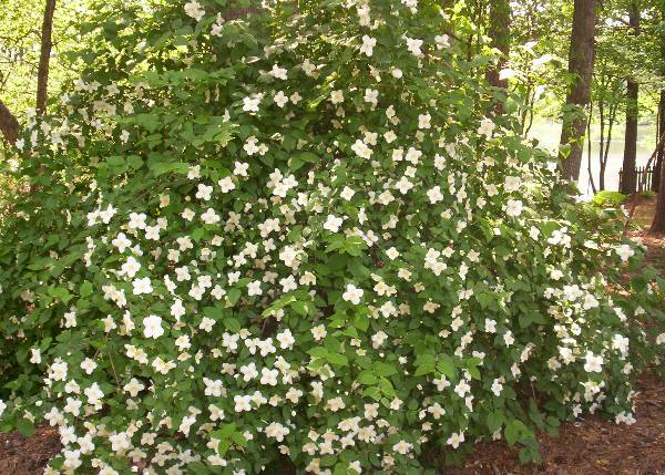 Q: I have a bush in my yard that produces dogwood-tree type flowers in the spring.