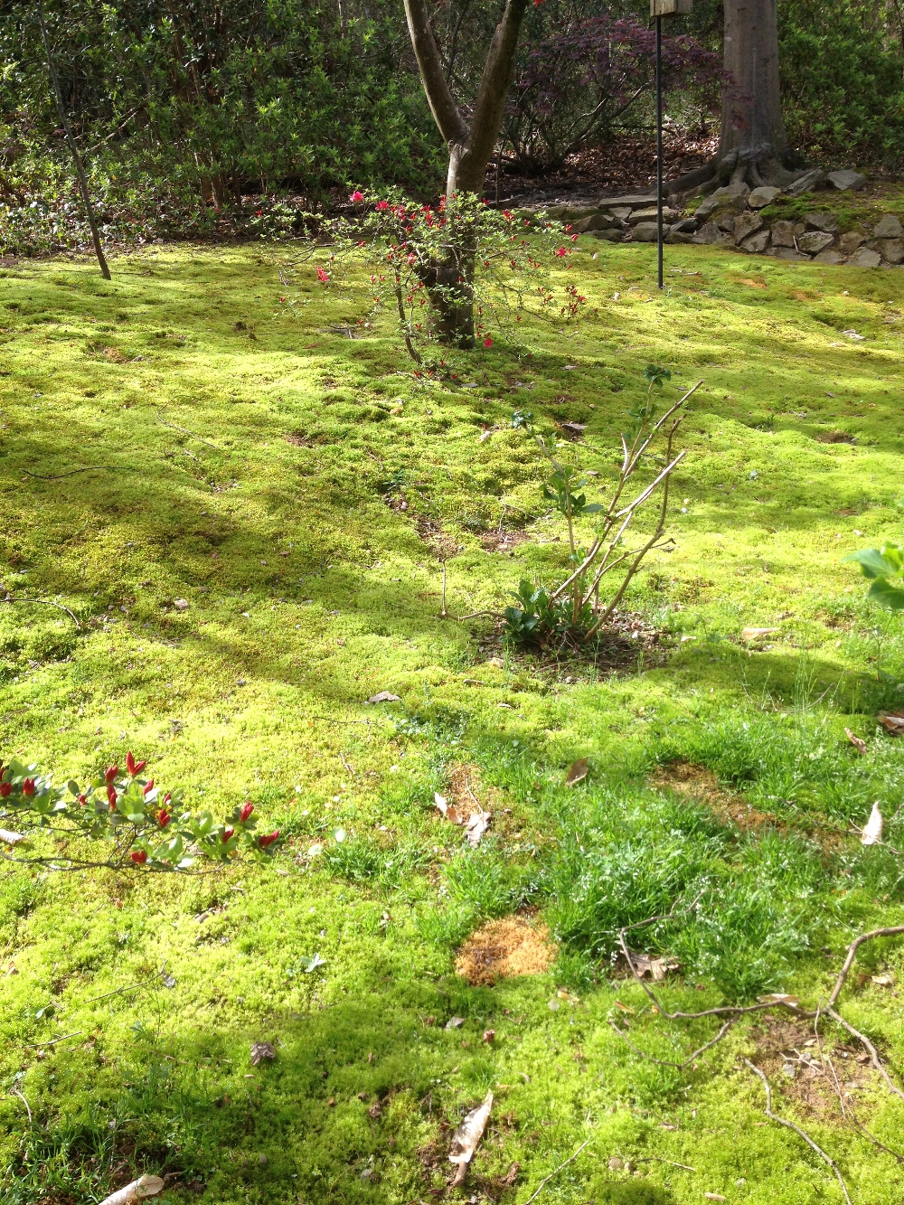 There are hundreds of lawn lovers who can demonstrate how easy it is to grow moss. They have it in patches across their lawns where they want grass to grow. As with any plant, the secret is to give it what it wants. The common mosses in Atlanta crave dense, clay soil, plenty of moisture and shady conditions. All you need to do for moss maintenance season is blowing fallen leaves off the patch and pulling out small weeds as they appear. Since moss does not grow rapidly, it usually does not require fertilizer beyond what Mother Nature provides naturally. There are hundreds, if not thousands, of different mosses in the world. If the moss bug has bitten, you might enjoy reading “The Magical World of Moss Gardening” by Annie Martin.