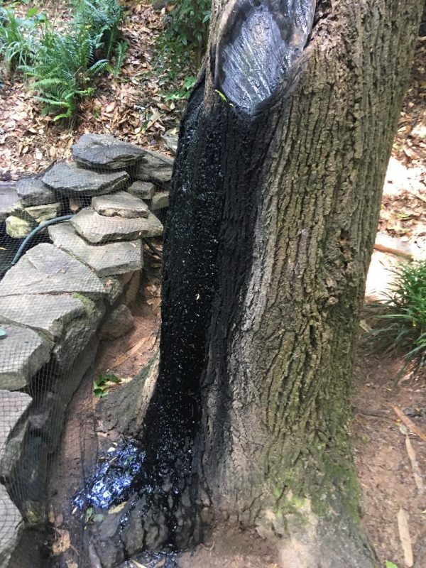 Q: I have a poplar tree providing wonderful shade for my house. This spring it developed two places on it that look like it is bleeding. A black substance is drooling down the side of the tree for 18 to 20 inches. Is there something I can do?
