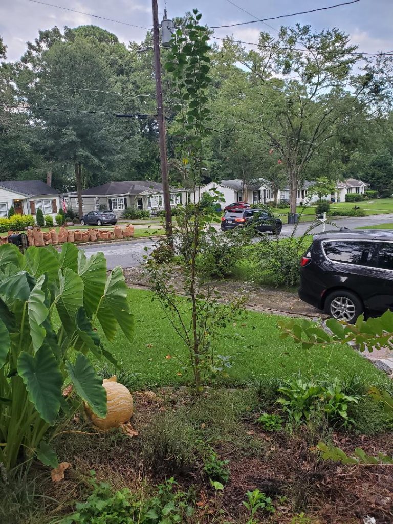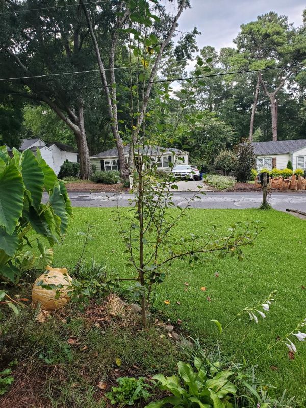 In this way the tree will be kept small and won’t spread all over your flower bed and grass.