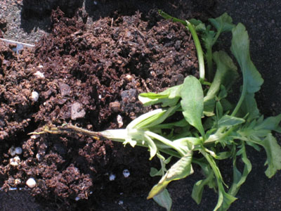 Q: I planted a large bed of pansies in mid- October. Most have been growing well. However, I noticed one plant that appears extremely wilted. Upon examination, it seems the stem of the plant at soil level narrows to the size of a thread — almost as if it had been chewed, though the stem was not totally severed.