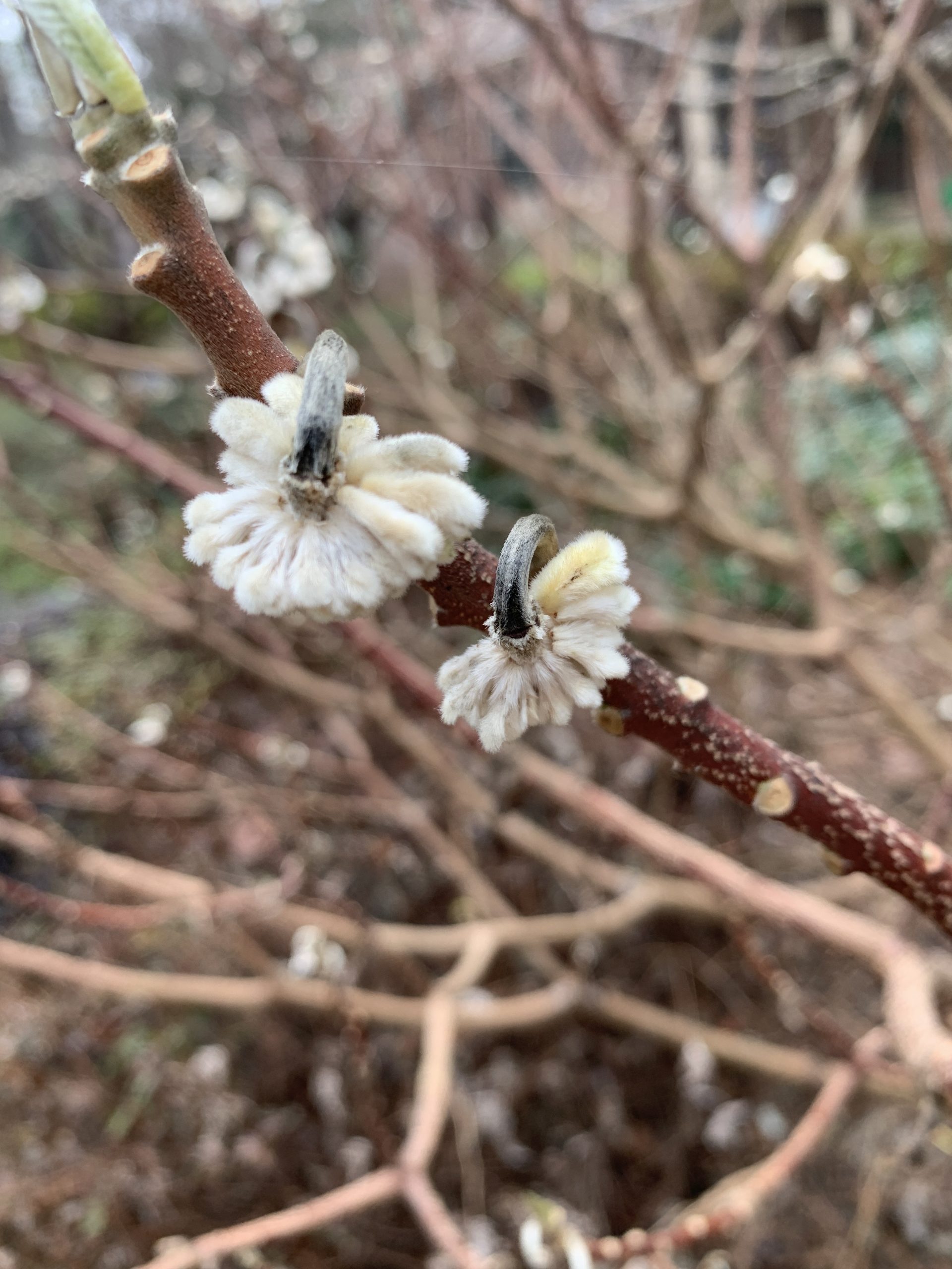 Paperbush (Edgeworthia) flowers hurt by early frost
