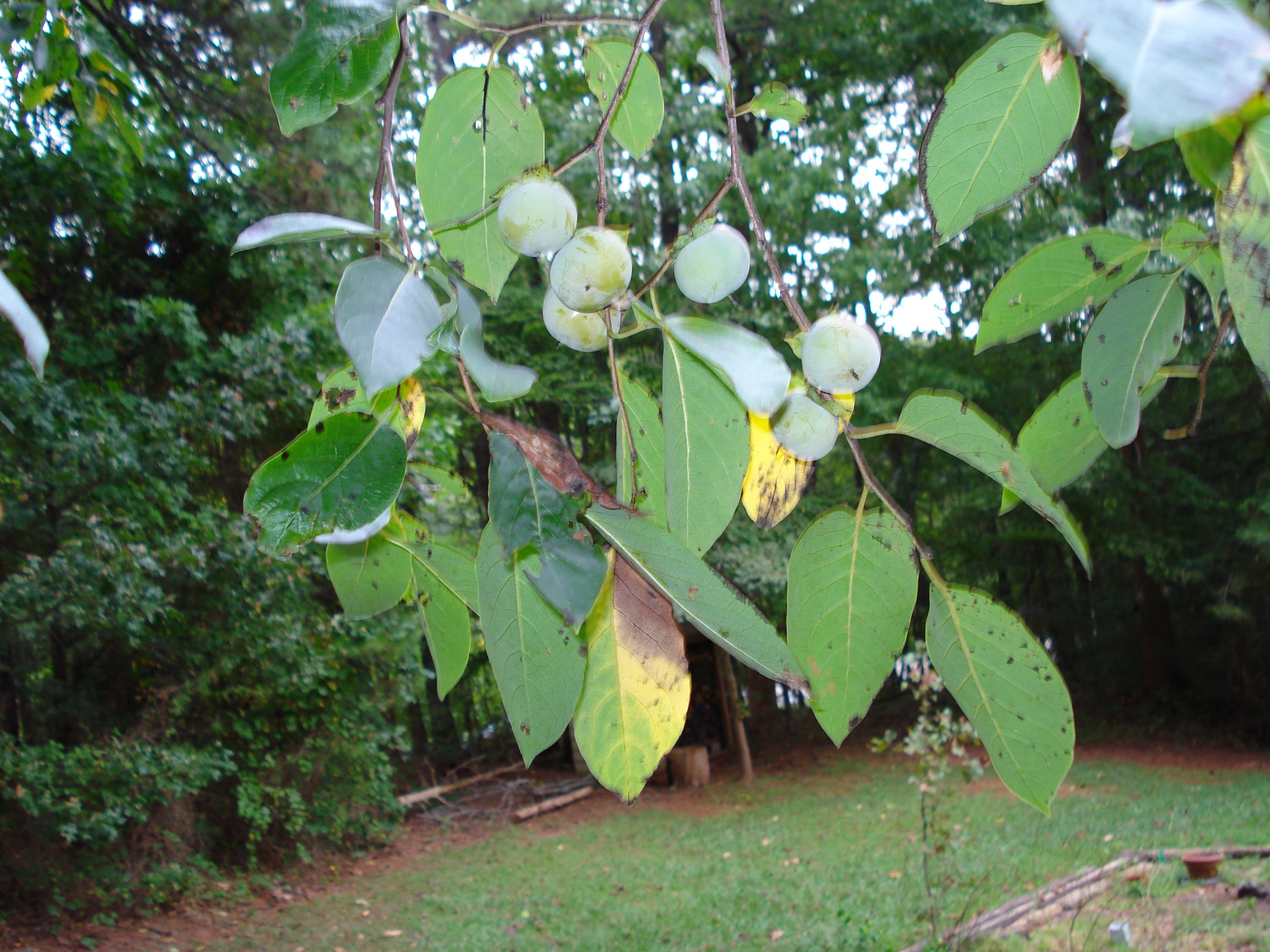 Persimmons can be grown throughout the Southeast. Opossums and humans enjoy the fruit each November. Fruit of the native Persimmon, Diospyros virginiana, is about the size of a plum. Oriental Persimmons, Diospyros kaki, are larger and have less astringency when less than fully soft-ripe.