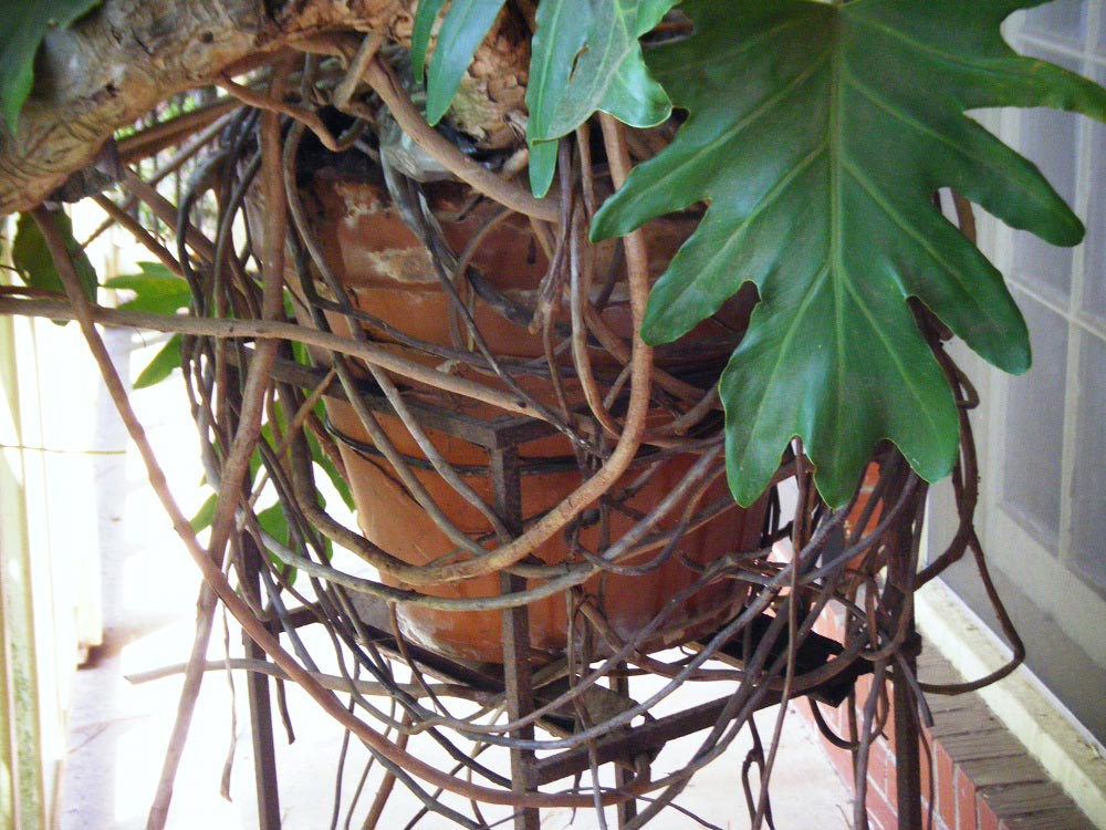 Q: I have had this plant on my front porch for thirty years. It started with one sad looking leaf and has turned into what you see. I would love to know exactly what kind of plant this is. It has survived all these years in this spot, in this pot, in this stand.