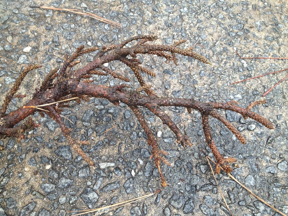 A dwarf loblolly pine, Pinus taeda ‘Nana’, was developed from a broom that was propagated at a nursery somewhere.