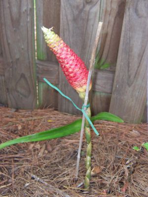 Q: I was recently in Bainbridge. A lady was making a flower arrangement with “flowers” I have not seen before. The flower looked like a six-inch tall pine cone on a very thick stem. She called this a pine cone ginger. It was green on the bottom, red in the center and red-yellow on top. I would be most appreciative of any information.