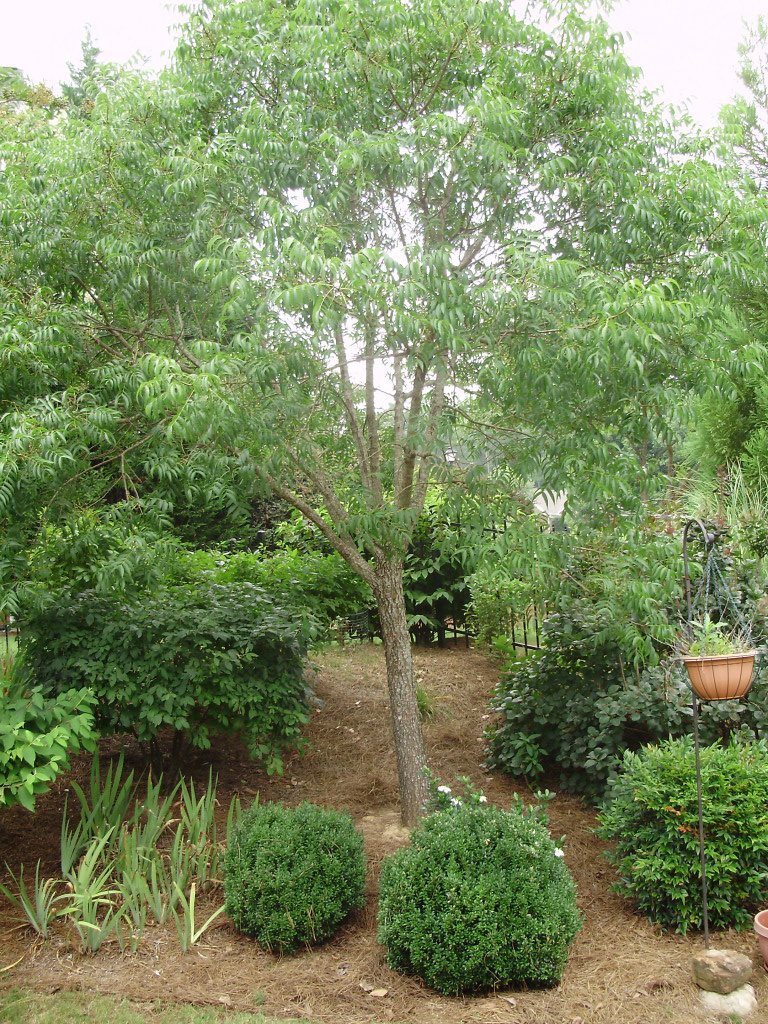 Q: Our 71/2 year old Chinese Pistache tree has always been dense with foliage. In the past couple of weeks, we have noticed that it was not filling out with the abundance of leaves. Upon close examination today, nothing seems to be wrong with the trunk, or the ground around the roots, yet about 25% of the pencil-thin branches within the inside of the tree have no leaves at all.