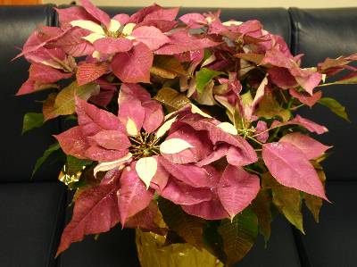 A: Colored poinsettias are striking. The idea originated in Europe and colored plants have been available in the U.S. for a couple of years.