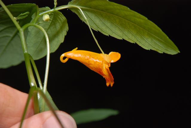 Jewelweed can be found growing wild along semi-sunny creek banks and mountain roadsides. The easiest time to recognize it is in August, when the flowers are prominent.