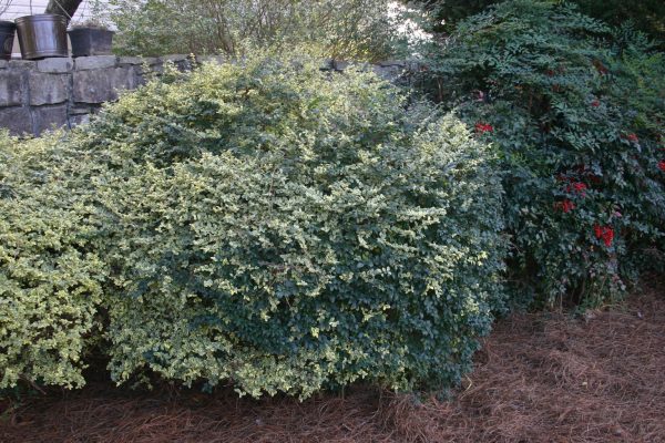 If you want a full and leafy look all the way to the ground, you have two choices: prune the variegated privet down to twelve inches or hide the ugly knees with another low shrub (like dwarf yaupon holly) in front. If you take the first option, the stumps will be ugly for a few weeks but will begin to sprout by mid-July.
