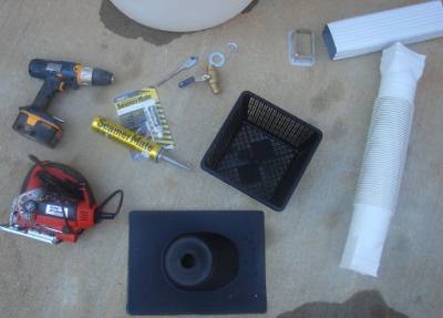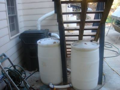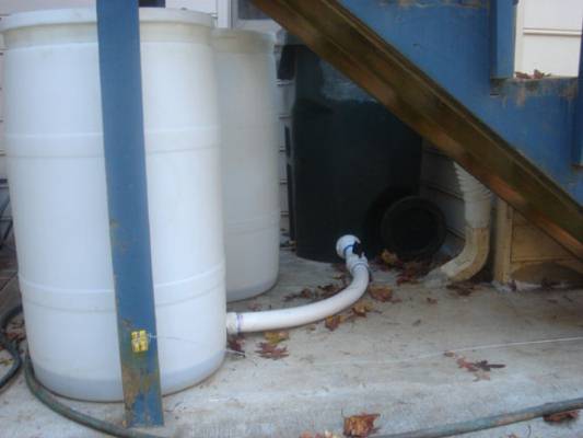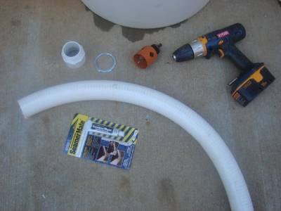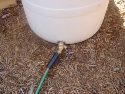 Attached are pictures of the water tank parts and setup I worked out. Some of the parts are in the plumbing fittings section of Lowes, and some are in the roofing/gutter section, and some are in the outside garden area where the corrugated drain pipe is.