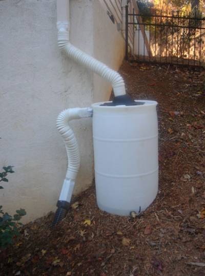 I thought I’d send you a refined rain barrel design I worked out. I looked at your web site, and a few more, and then I made some changes and came up with the attached. All parts are readily available at the home improvement centers, I put in 7 at my house, and they are working great. I probably made it too hard, but my background as an engineer caught up with me as I went along!