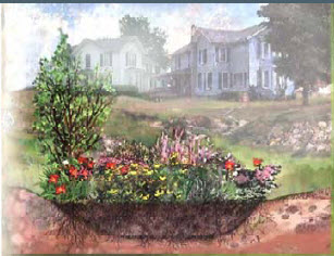Instead, install a rain garden, using plants that easily tolerate soggy soil.