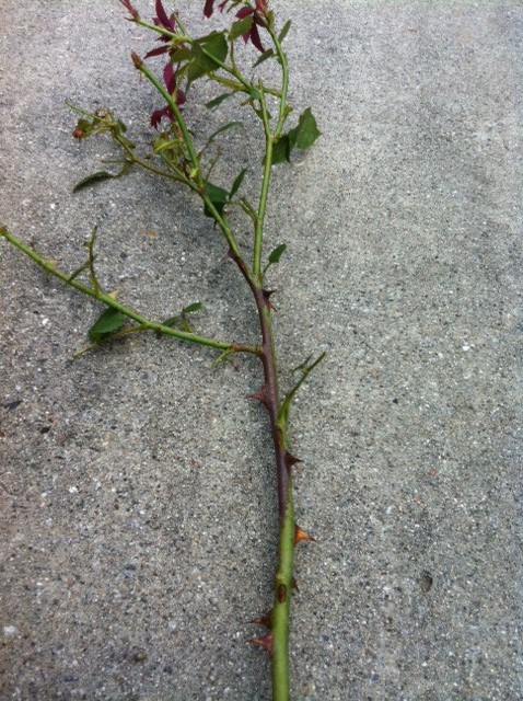 A: Actually, there are TWO good ways to propagate it in early summer. The first is to simply root a cutting. Examine the new branches on your rose. Note the change in color of the bark from the growing tip backwards. The bark will be green for a few inches and then turn woody and brown. The best cutting will be four to six inches long with brown bark surrounding the joint where a leaf joins the branch. Make a slanting cut to remove the cutting just below the joint but carefully snip away this leaf. A couple of leaves should remain on the green end of the cutting. Dust the cut surface with a rooting hormone (Rootone).