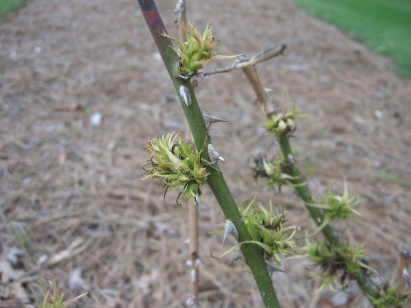 Q: I have several varieties of roses. This spring all the rose bushes in my center garden, about 15 bushes, never leafed out. They only produced very tiny dwarfed leaves. The rose bushes on the edge of my lawn 15 feet away leafed, flowered and grew as usual. Any suggestions?