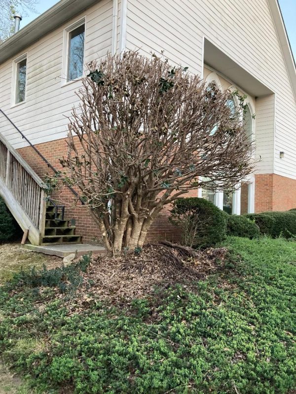 Q: One of our parishioners volunteered to “trim” our shrubs and 12 foot tall holly. What do we do now? Should we cut it back even more or just leave it alone and see if it comes back next year? It sits right out by the front entrance.