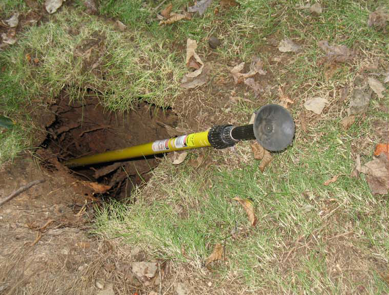 4. Fill the entire cavity by adding loose fill dirt in 12-inch layers. Pack the soil firmly after each 12-inch layer to prevent future settling. Failure to pack the entire cavity may cause another sinkhole in the future.