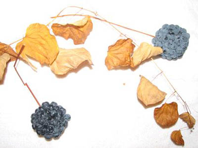 The clusters look like tiny blueberries. The vines had what looked like small grape leaves.