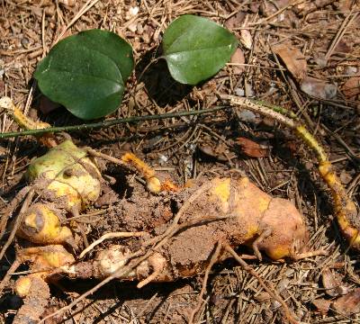As the smilax begins to grow from seed, it sends up a single shoot and produces an underground tuber. As the plant matures, a large cluster of bulbous roots is created. Only a few shoots will arise from the root mass; the majority of the roots lie dormant. If you kill one shoot, that root may die, but adjacent roots send up shoots within a few days.