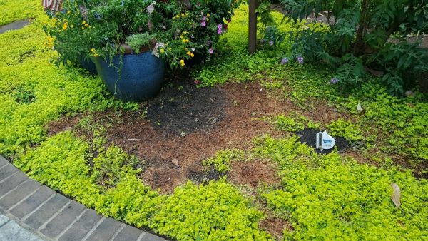 A: Your creeping Jenny has Southern blight. Look closely and you’ll see some “webby” stuff between leaves and stem and soil.