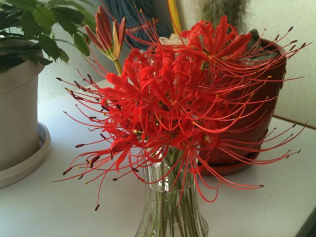 A: It’s spider lily, Lycoris radiata, sometimes called hurricane lily because the blooms appear during hurricane season. It’s always a surprise to see these distinctive flowers because no leaves are present when the blooms appear. They spring unexpectedly from the earth.
