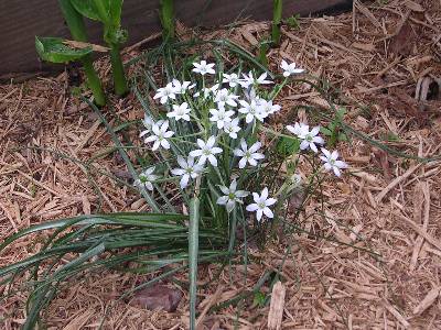NOTE: astute and observant gardener Bobby Wynn points out that Star of Bethlehem has six petaled flowers but a similar plant, spring beauty, Claytonia virginica, has only five petals.