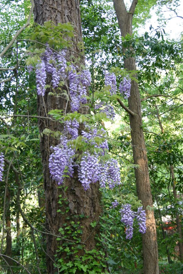Q: I recently cut down a thirty-year-old wisteria vine in my back yard. Now the whole stump is covered in new growth. Is there anything I can use to stop the growth, kill the root system, etc.?
