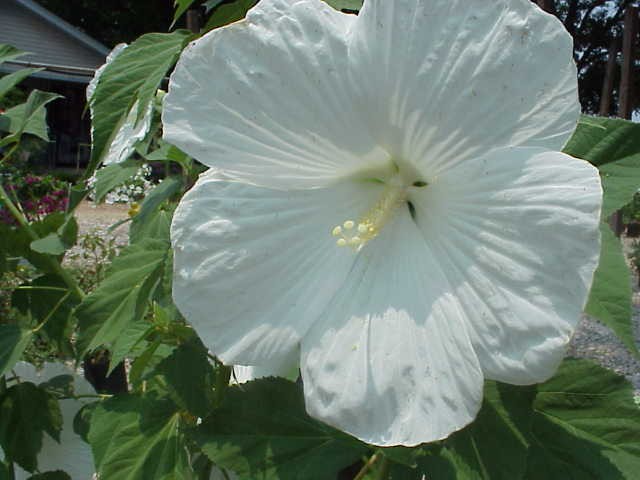 A: Dinner plate hibiscus refers to swamp hibiscus, Hibiscus moscheutos. Some gardeners call it swamp mallow or rose mallow. It gets its name from the flower size: six to eight inches across. The Disco Belle series is common in nurseries, along with ‘Lady Baltimore’, ‘Lord Baltimore’ and ‘Luna’. The stems die back in winter but sprout vigorously each spring.