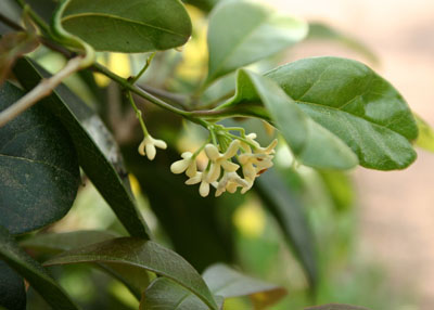 The flowers are very small compared to their perfume. The leaves are lightly toothed, in contrast to other osmanthus species, whose leaves might fool you into thinking they are those of a holly.