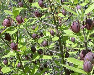 A: Your plant is a sweetshrub, Calycanthus floridus. The red flowers are strap-like, unlike the native azalea flowers you’ll often see nearby. Old-timers once called it “sweet bubby” due to the flower fragrance. In my opinion, the smell is pretty weak in most, but not all, cases. I am told that yellow-flowered ‘Athens’ is usually fragrant. The crushed leaves are pleasant-smelling.