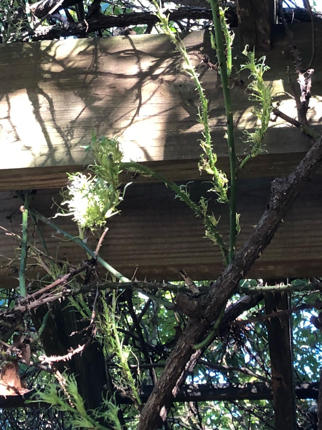 Q: Can you tell me what makes a rose sprout shoots like this? It’s an old rose, maybe 15 yrs. old.
