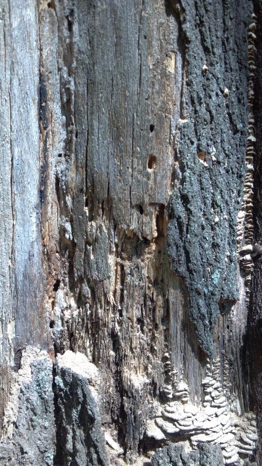 In any case, the damage never reversed. The tree tried to heal over the rot but was never able. Now naturally-occurring ambrosia beetles have made a home in the open trunk.