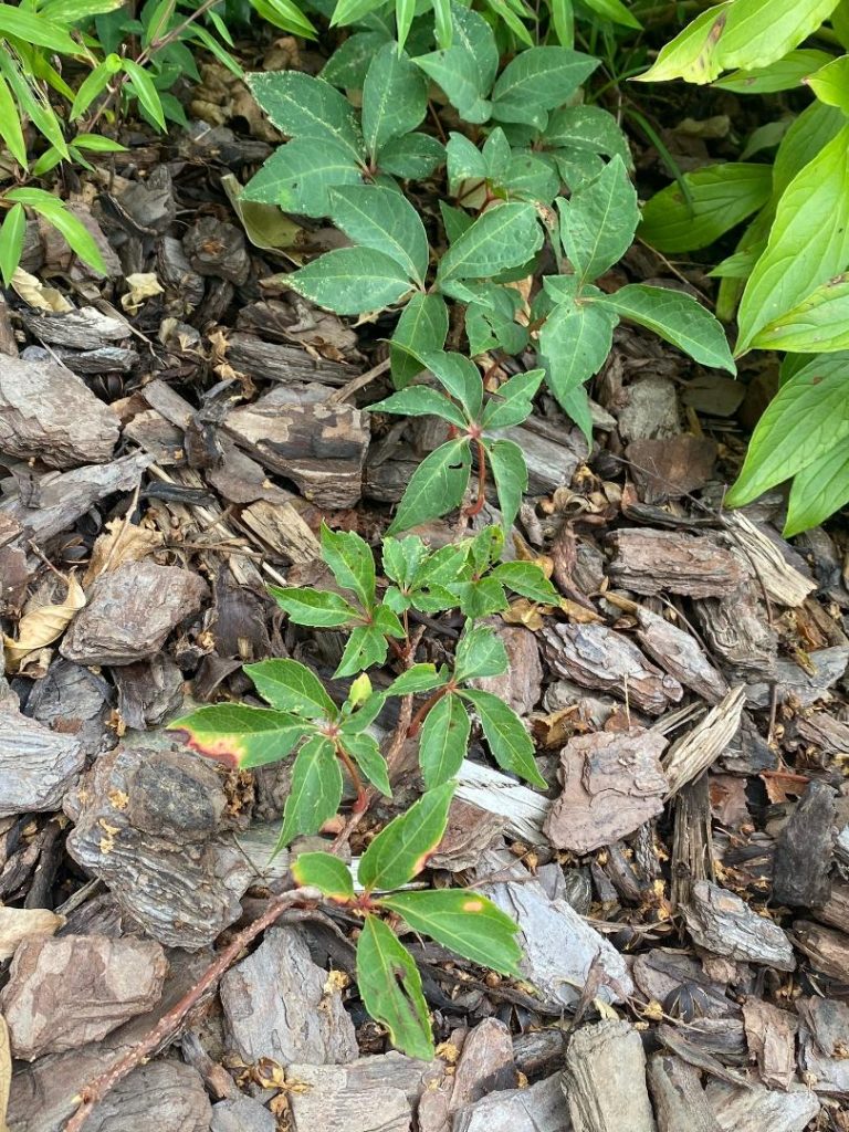 Virginia creeper is not usually a culprit but the proof is in the pudding! This five-leafed vine is often confused with three-leafed poison ivy.