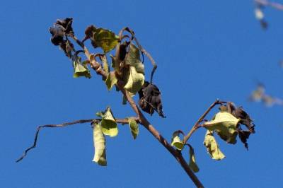 Hydrangea is an exception here. It flowers on twigs that grew last fall and many plants had already pushed out new growth and even small flower heads. The hydrangea branch tips that show cold damage will likely not flower this year… but limbs closer to the ground that show no damage may well produce flowers in June.