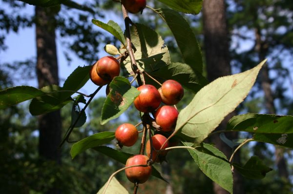 ‘Dolgo’ is attractive and commonly available. ‘Redflesh’ is crimson-colored