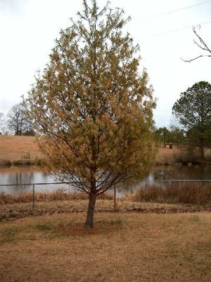 Q: I have a white pine turning yellow. It is located 20 feet from my pond. Is there any thing I can do or is this normal?