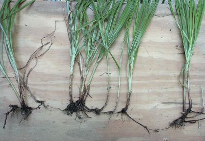 purple nutsedge – chain of rhizomes (yellow nutsedge does not form a chain)