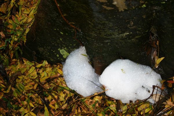 Q: We have a big tree close to the driveway that has us worried. There is a lot of hard white stuff around the base. Do we have a problem?
