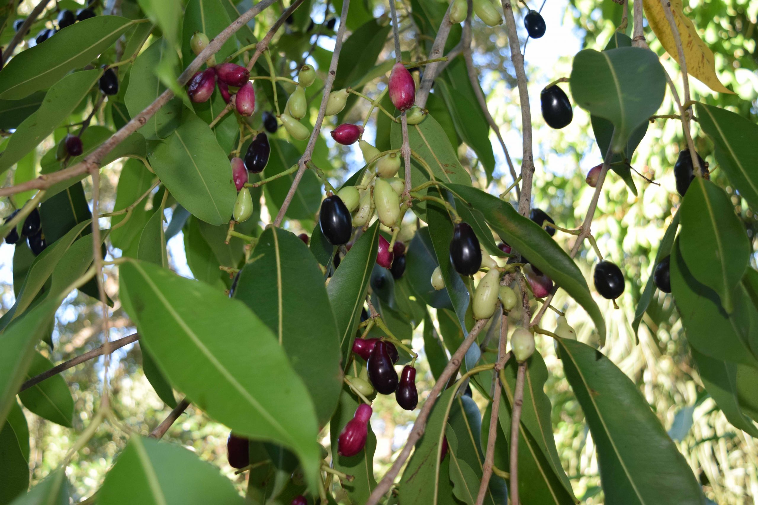 The previous comment wasn’t meant to confirm the ID. Metrosideros may be right – I’ll concede being no expert – but the Carolina laurel cherries in the Atlanta area have round fruit, not oblong.