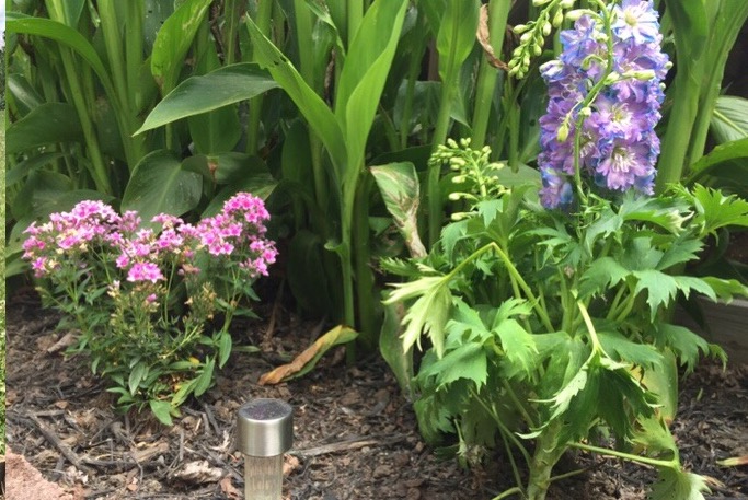 #2 photo- the flowers look like wishbone flowers (Torenia fournieri). #1photo- the blue flowers look like a type of Delphinium. The second pink flowers are not clear enough to call. maybe you can make new post with a closeup of the flowers & leaves. The included link is for wishbone flowers. Best wishes! http://davesgarden.com/guides/pf/go/249/