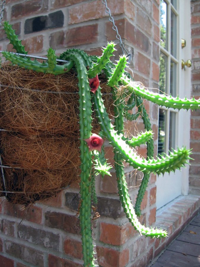 Hanging cactus with small orange flower
