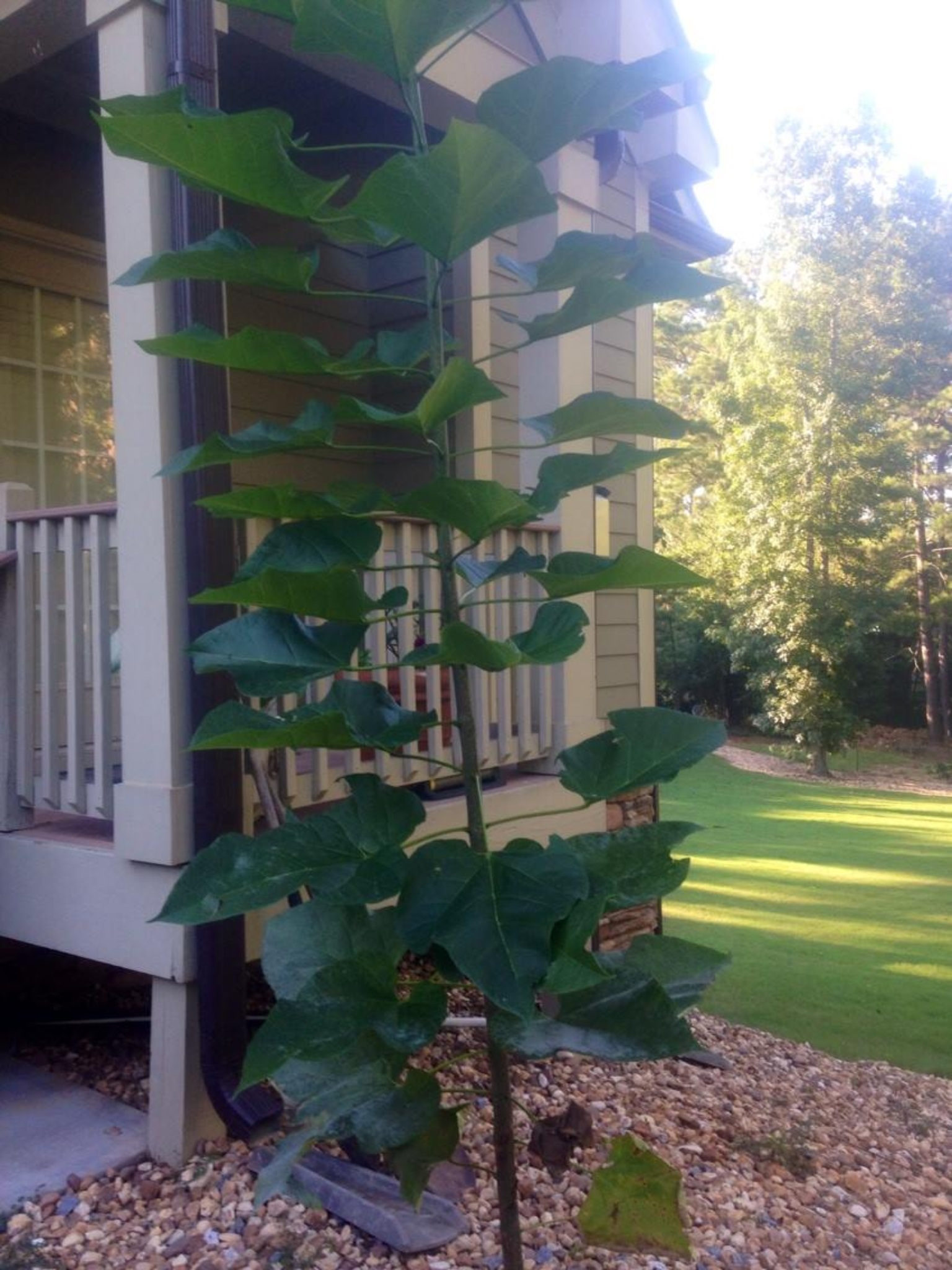 Looks like paulownia to me. A very vigorous invasive.
