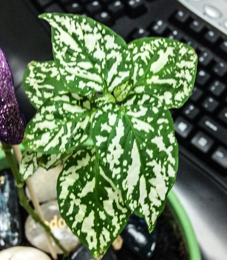 I can’t see the plant’s side view to be certain. I’m guessing maybe a green form of polka dot plant (Hypoestes phyllostachya). Check it out and see if you have a match. If it isn’t that, make new post with photo of plant’s side view. Best wishes! https://plants.ces.ncsu.edu/plants/all/hypoestes-phyllostachya/