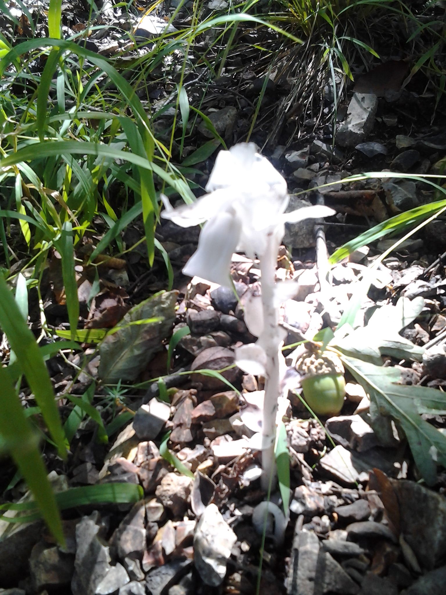 Indian pipe. http://www.walterreeves.com/name-that-plant/small-plant-that-looks-like-a-rose-bloom/
