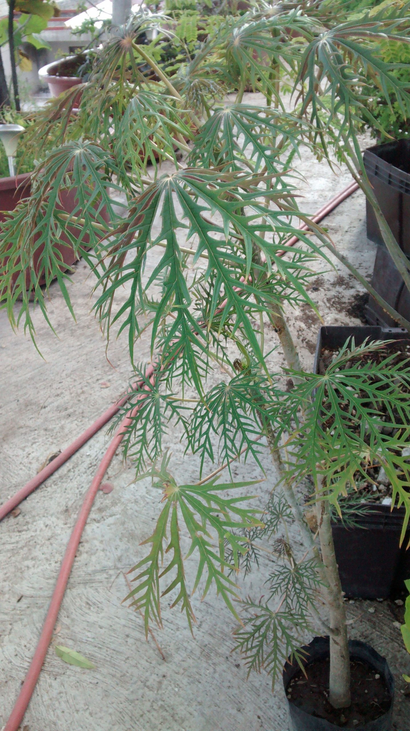 Need to see flower. Maybe Jatropha multifida. http://search.yahoo.com/search;_ylt=AwrSbD.M8U5UiQ8A8whXNyoA;_ylc=X1MDMjc2NjY3OQRfcgMyBGZyA2Noci1jb21vZG8EZ3ByaWQDWEVUa3ZaekFUV3l4aW9SVktfbnhTQQRuX3JzbHQDMARuX3N1Z2cDMTAEb3JpZ2luA3VzLnNlYXJjaC55YWhvby5jb20EcG9zAzEEcHFzdHIDSmF0cm9waGEgbXVsBHBxc3RybAMxMgRxc3RybAMxOARxdWVyeQNqYXRyb3BoYSBtdWx0aWZpZGEEdF9zdG1wAzE0MTQ1MTQyNDU-?p=jatropha+multifida&fr2=sa-gp-us.search&fr=chr-comodo