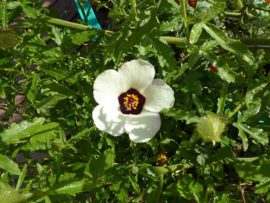 Please tell me the name of this flower, which reseeds annually. It’s like hibiscus but not. Thank you
