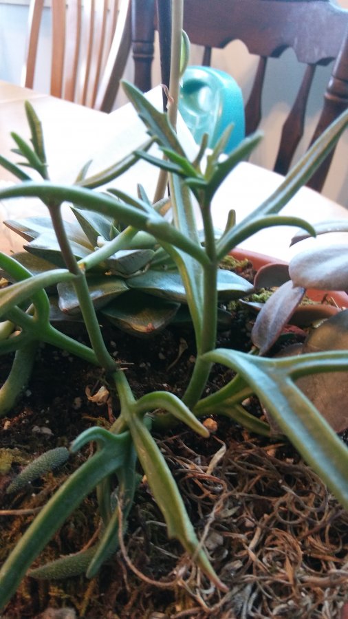 Antler like rubbery leaves from a 4inch plant. Bought with succulents at Walmart.