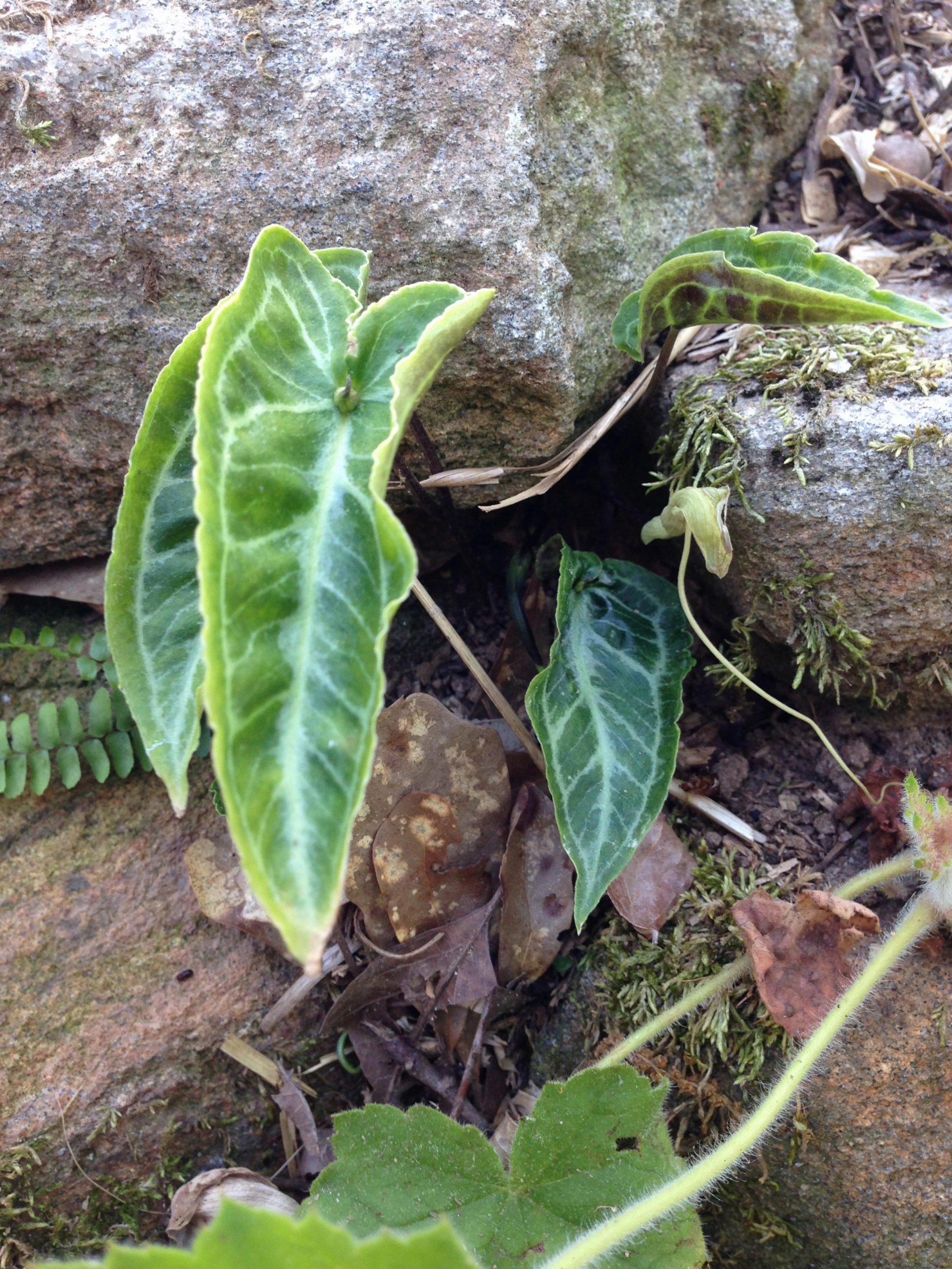 I can’t seem to be able to identify this little thing growing between the rocks in my wall. Its leaves are approx. 4-5 inches long, are thick and somewhat leathery. Can you help?
